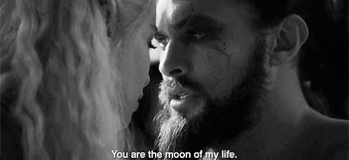 Khal Drogo expresses his love to Daenerys Targaryen, telling her, 'You are the moon of my life,' in Game of Thrones.