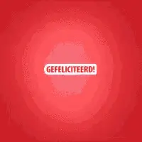 Gaston proudly displays his €25,000 Postcode Loterij cheque against a red background.