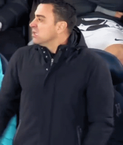 Xavi, the FC Barcelona coach, reacts intensely on the sideline, shouting and gesturing with his arms.