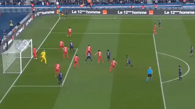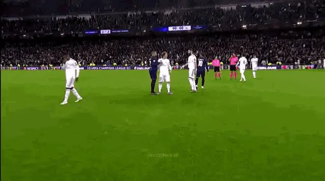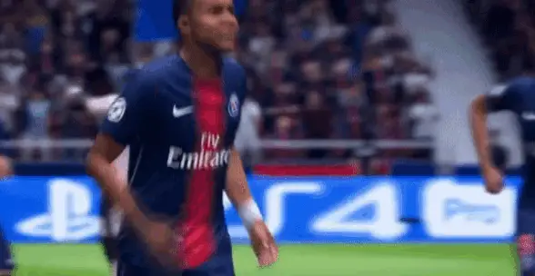 Kylian Mbappé, wearing his PSG jersey, stands on the field during a match between OM and Paris SG.