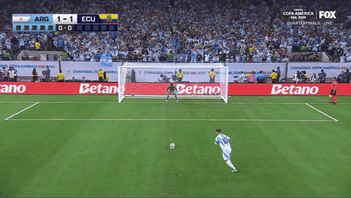 Lionel Messi misses a penalty kick for Argentina during a Copa America match, covering his face in disappointment.