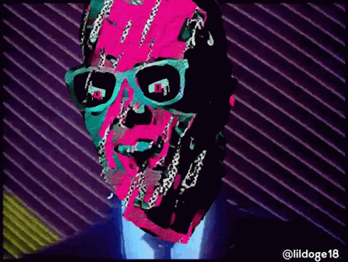 Abstract glitch art portrait of a man in sunglasses, inspired by Max Headroom, with vibrant colors.