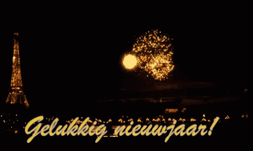 Spectaculair vuurwerk boven de Eiffeltoren in Parijs om het nieuwe jaar te vieren. Gelukkig Nieuwjaar!