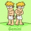 A cartoon illustration depicting the Gemini zodiac sign with two identical figures.