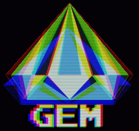 Pixelated blue and white diamond logo with 'GEM' text, representing Gemliveco Bali Event.