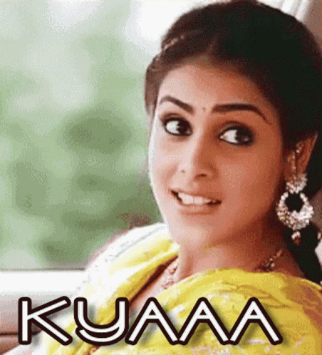 Genelia Dsouza reacts with a surprised expression, exclaiming 'Kyaa!' while wearing a yellow saree.