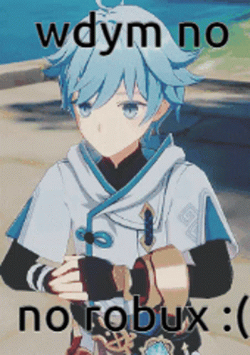 Chongyun from Genshin Impact looks disappointed asking 'wdym no no robux :(' in this meme.