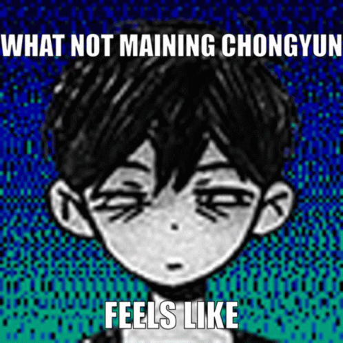 A pixelated meme featuring Chongyun from Genshin Impact, expressing 'What not maining Chongyun feels like'.