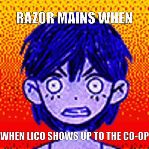 A Genshin Impact meme featuring a shocked Razor, reacting to Lico joining co-op, with text overlay.