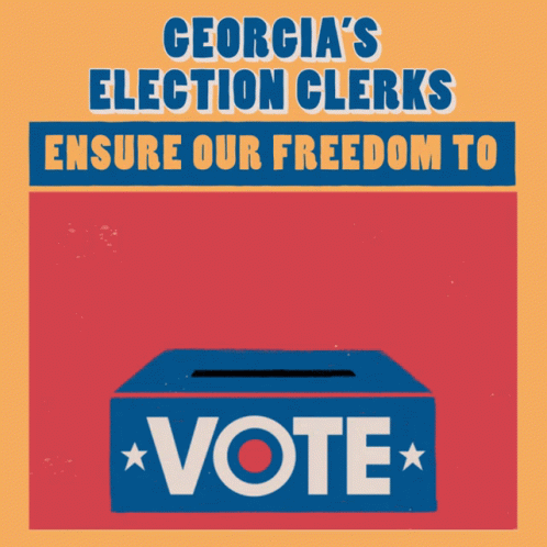 Georgia's election clerks ensure the freedom to vote, depicted on a poster with a hand casting a ballot.