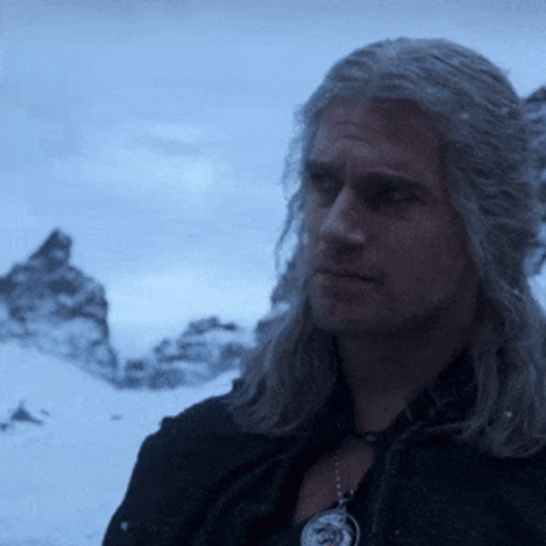 Geralt of Rivia, played by Henry Cavill, says 'So close' in a snowy landscape, followed by a shot of Ciri.