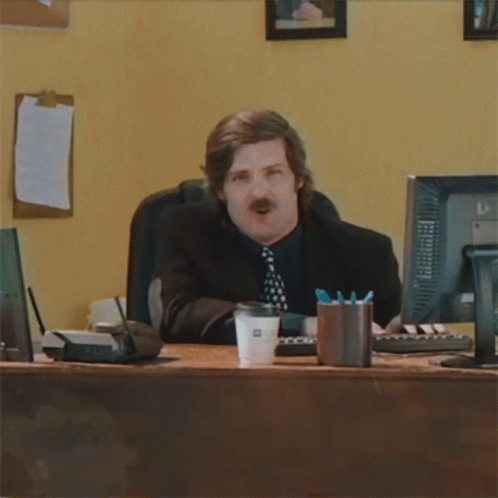 Waldo Levitz gets completely drenched by a massive splash of water while sitting at an office desk.