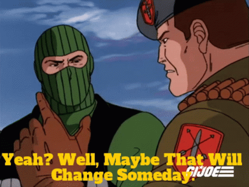 G.I. Joe's Beachhead confronts another soldier, delivering the memorable line: 'Yeah? Well, Maybe That Will Change Someday.'