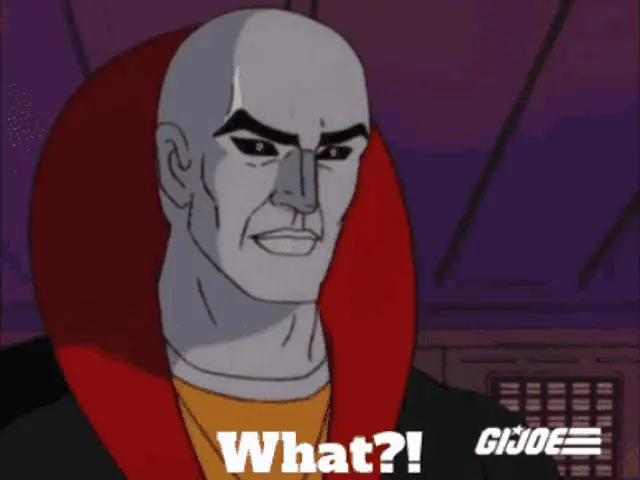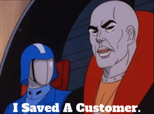 Destro from GI Joe says 'I Saved A Customer' to a Cobra Trooper in this animated clip.