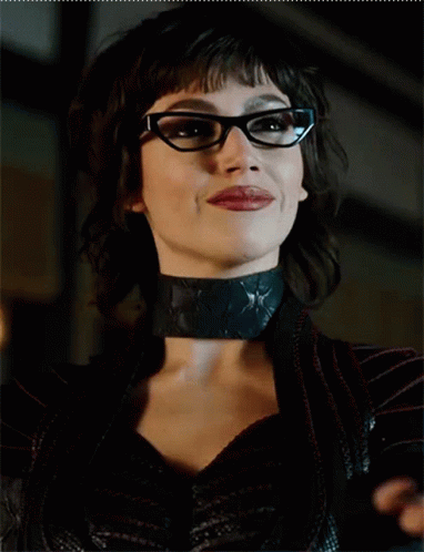 Ursula Corbero as The Baroness, wearing glasses and a choker, with a confident, smug smile.