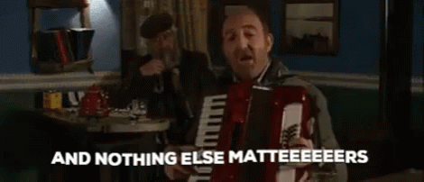 A man passionately plays the accordion and sings 'Nothing Else Matters' in Galicia, with 'Mimá' appearing on screen.