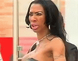 Inesbrasil makes a funny face, standing in front of a window with a very large breast.