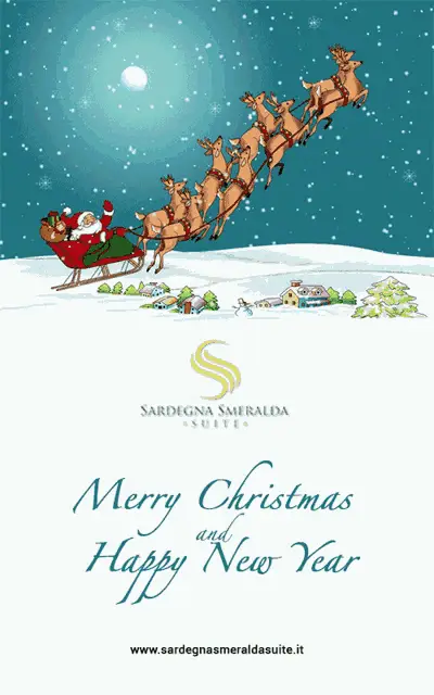 Two festive elves with superimposed faces dance energetically in a store, one holding a red gift bag.