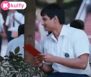 Jiiva from Neethaane En Ponvasantham holds a red envelope, smiling in a school uniform.