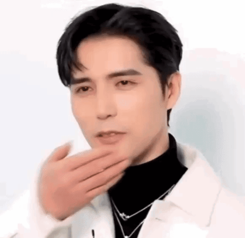 Ayunga covers his mouth while giggling politely, showing amusement in a white jacket and black turtleneck.