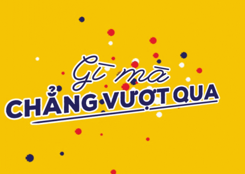 Motivational Vietnamese phrase 'Gì mà Chẳng Vượt Qua' (Nothing Can Hold Me Down) on a vibrant yellow background with confetti.