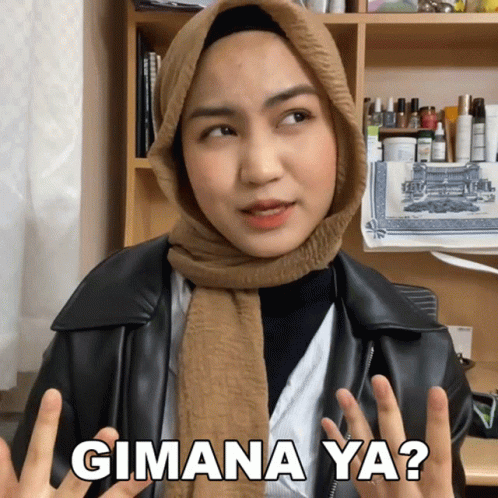 Xaviera Putri, wearing a hijab and black jacket, expresses confusion with 'Gimana Ya?'