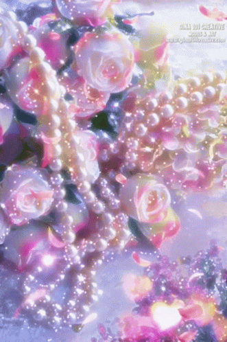 Dreamy animation by Gina101 Creative featuring sparkling pink roses, pearls, and a hummingbird.