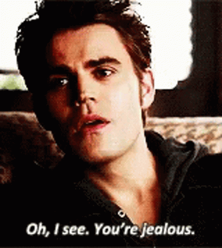 A man from Gina101creative's content sits on a couch, delivering the line 'Oh, I see. You're jealous.'