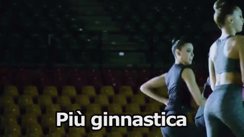 Two women gracefully perform rhythmic gymnastics with purple balls, promoting more movement and sport.