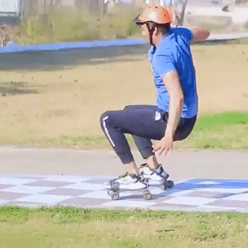 Shivam Yadav falls while skating, wearing a helmet and blue shirt, then lies on his stomach on a mat.