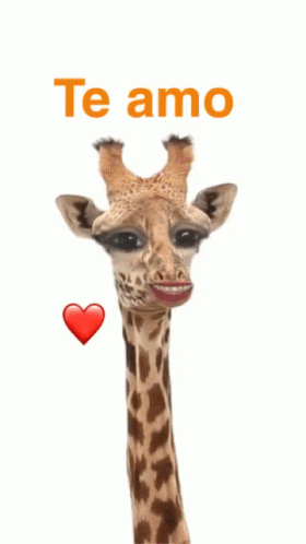 A cute giraffe with a red heart and the words 'Te amo' (I love you) displayed, expressing affection.