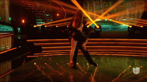 Lindsay Casinelli performs a dynamic dance, being lifted and spun by her partner on the Mira Quien Baila stage.
