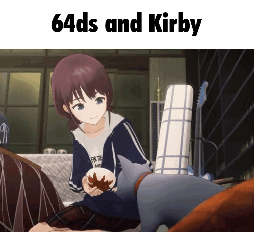a cartoon of a girl and a cat with the words 64ds and kirby on the bottom