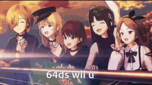 a group of anime girls standing next to each other with 64ds wii u written in the corner