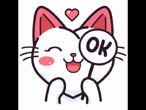 A cute cartoon cat holds an 'OK' sign, followed by a sparkling 'Thank you' message with a diamond. From Gitapro3 Gitagita.
