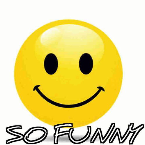 A yellow smiley face emoji changes expression, accompanied by the text 'SO FUNNY'.