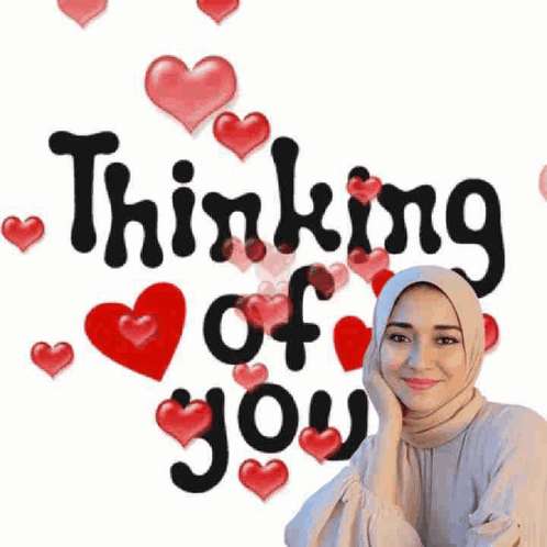 Gitapro3 Gitagita smiles in a hijab, surrounded by hearts and 'Thinking of you' text.