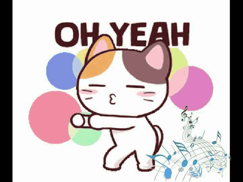 Gitapro3 Gitagita, a calico cat, dances energetically with 'OH YEAH' text and musical notes.