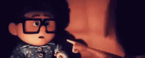 An animated character from Up, wearing glasses, makes a solemn promise with the phrase 'Ti Giuro'.