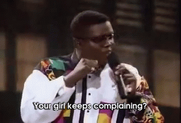 Bernie Mac delivers a classic stand-up comedy line about a complaining girlfriend, captured live on stage.