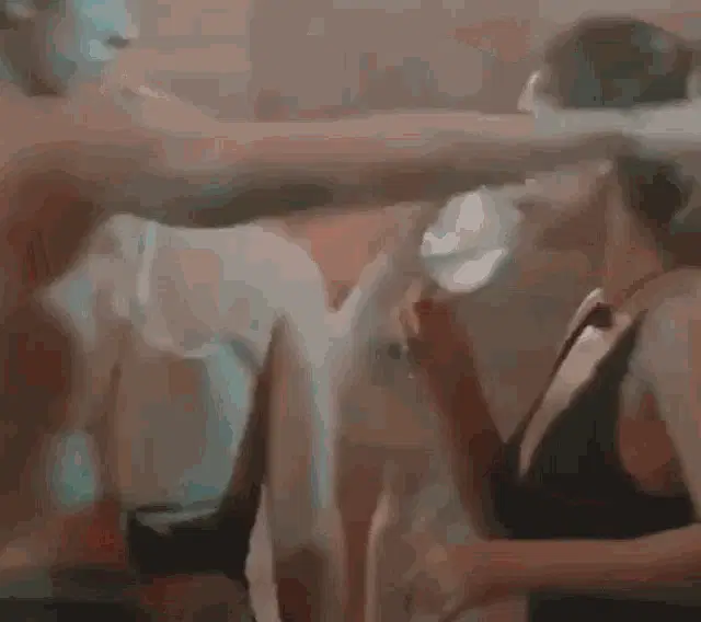 Gizelly and Gigifuracao share a playful moment, clapping hands and falling back in laughter.