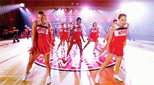Brittany Pierce, played by Heather Morris, performs an energetic cheerleading dance in a scene from Glee.