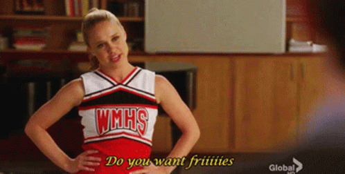 Glee's Kitty Wilde, played by Becca Tobin, as a WMHS cheerleader, asks 'Do you want friiiiities with thaaaaat?'
