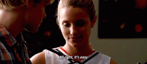 Sam Evans and Quinn Fabray from Glee, with Quinn saying 'All right, It's easy.'
