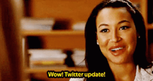 Santana Lopez (Naya Rivera) from Glee reacts with excitement to a 'Twitter update!'