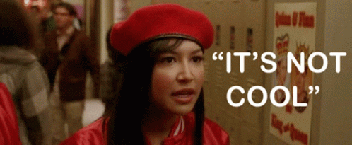 Santana Lopez (Naya Rivera) from Glee, wearing a red beret, emphatically states 'It's not cool'.