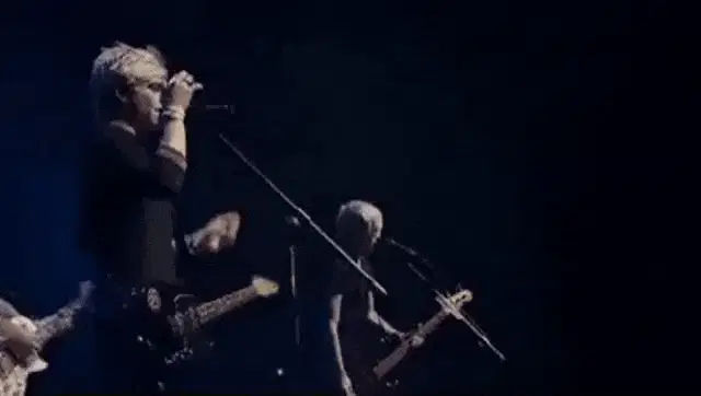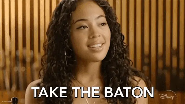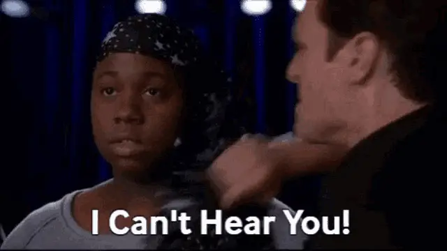 Sue Sylvester (Jane Lynch) from Glee delivers her iconic 'Good. Louder.' line in a blue and yellow jacket.