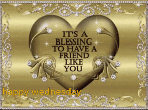 A cheerful 'Happy Wednesday' card featuring a sparkling gold heart.