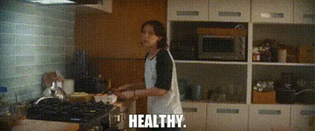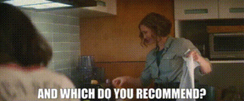 Emma Russell (Vera Farmiga) from Godzilla: King of the Monsters asks for a recommendation in a kitchen scene.