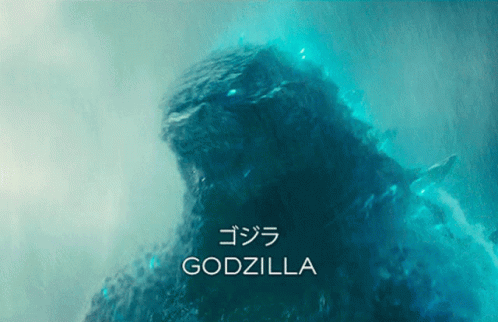 A powerful close-up of Godzilla, the iconic kaiju, with glowing blue features, as the title 'GODZILLA' appears.